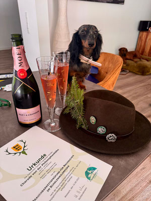 Am Samstag bestand Charade ( genannt Winnie) die Brauchbarkeitsprüfung des Jagdverbands Baden-Württemberg für die Nachsuche im Schalenwildrevier. Wir gratulieren herzlich und danken Besitzerin und Führerin Marcia Faas, dass sie Charade so toll fördert. Charade ist die Tochter unserer Belice von der Philosophenhöhe und Vladimir vom Wenzelhof.